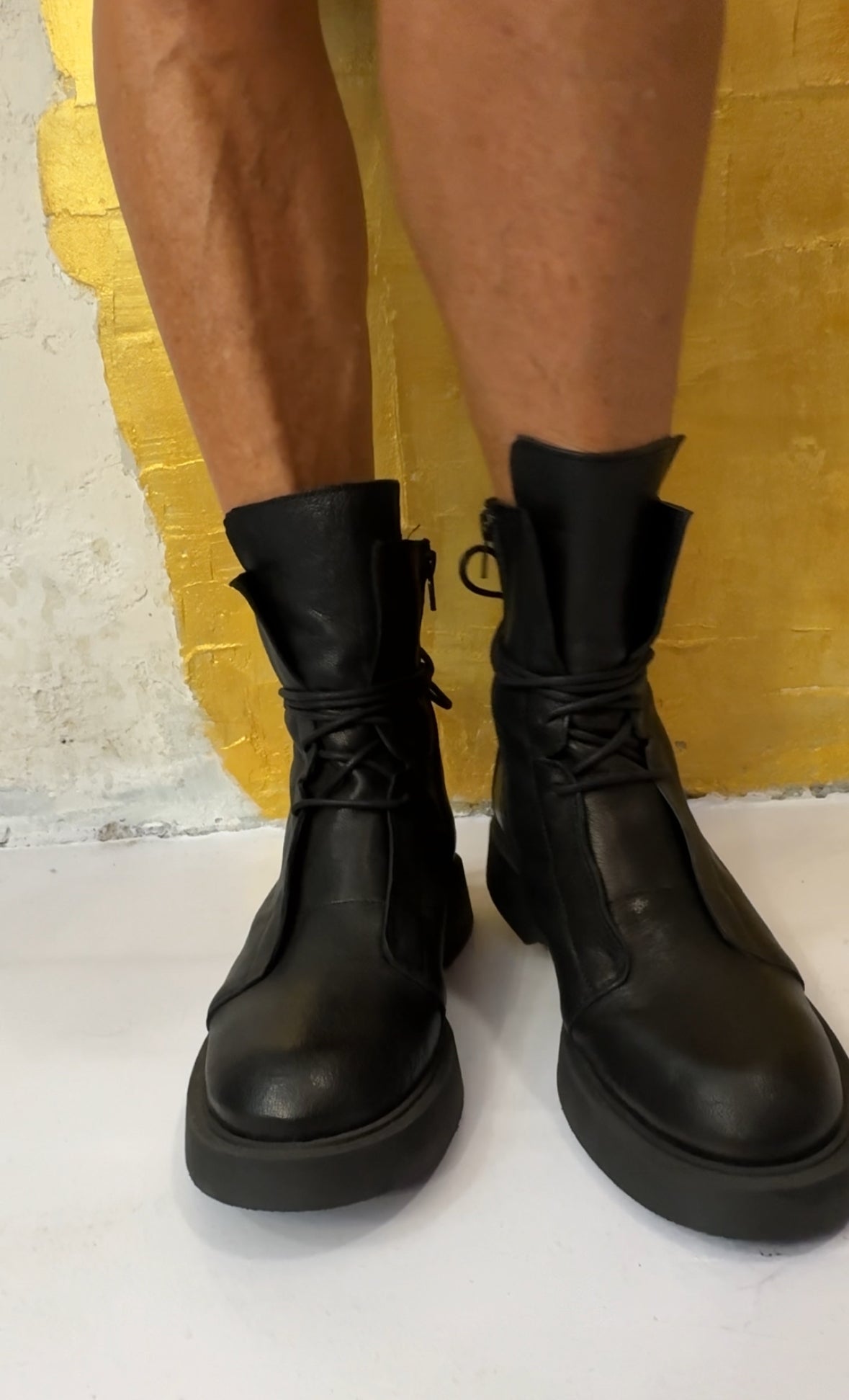 Anfibi in pelle morbidissima chiusura centrale con lacci e chiusura laterale con cerniera suola in gomma antiscivolo e antipioggia, brand Susy Mix