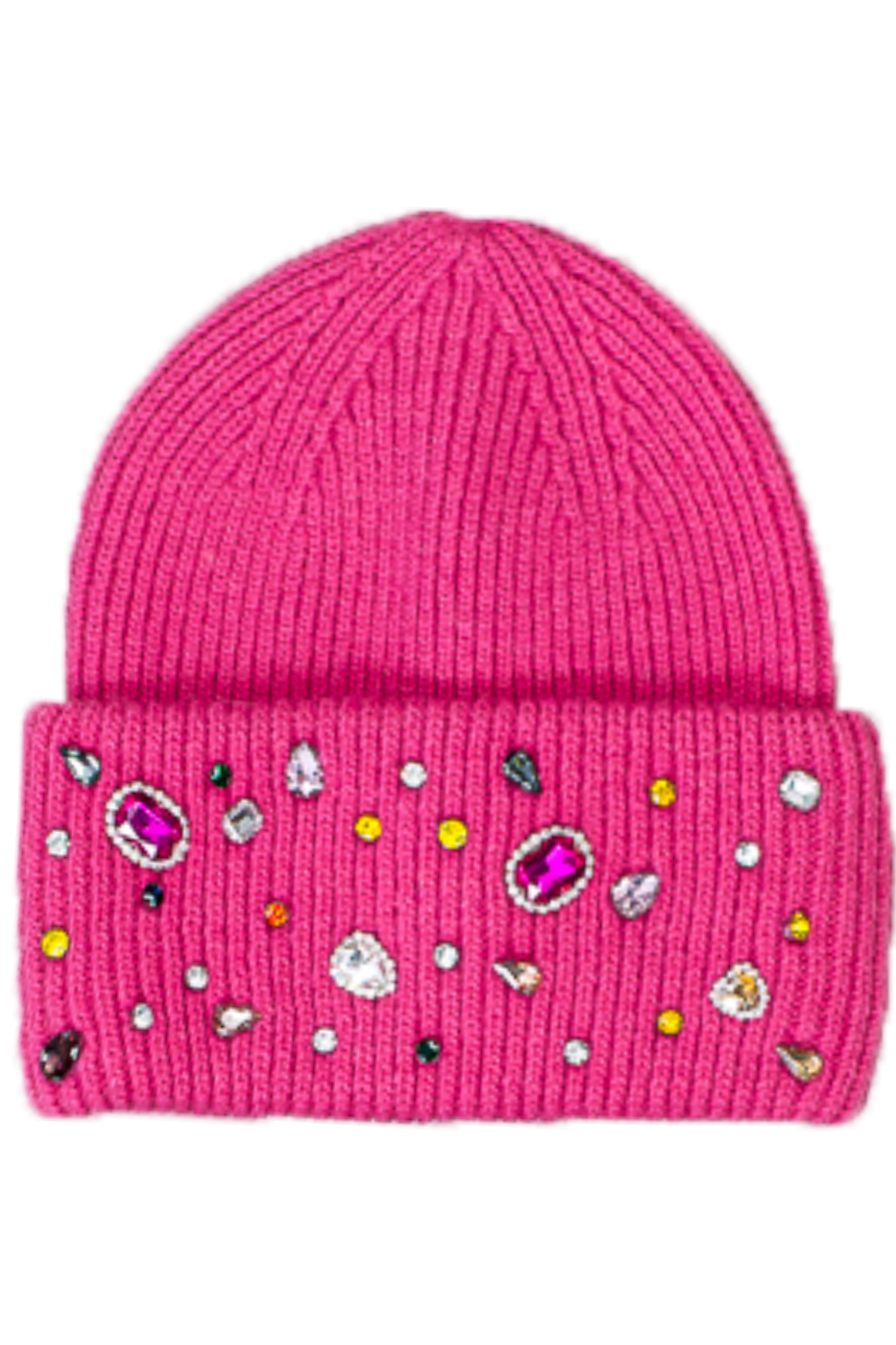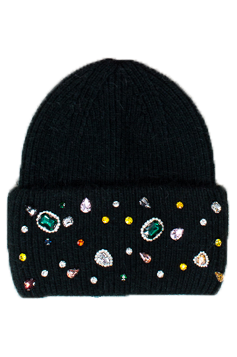 Cappello in morbida lana impreziosito da castoni colorati cuciti a mano. Per chi ama brillare anche d'inverno. Taglia unica. Un'idea regalo glamour e originale per Natale.πΒ