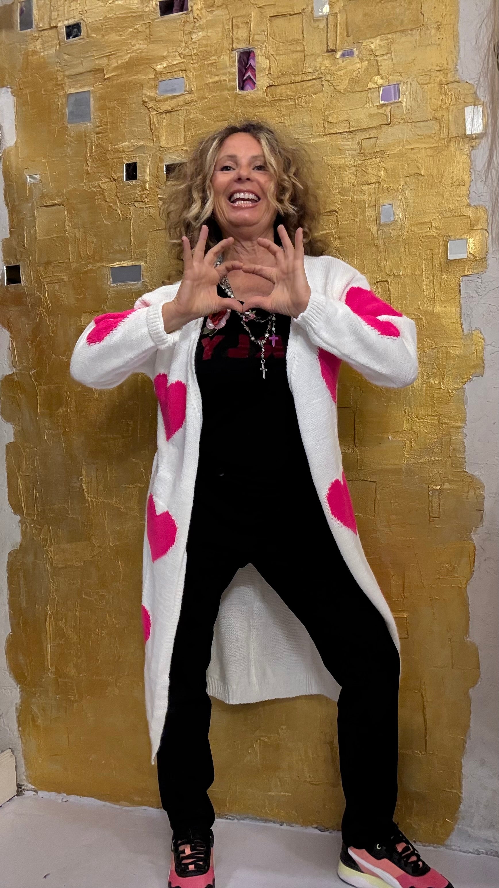 CARDIGAN LUNGO JACQUARD CUORI , Taglia Unica