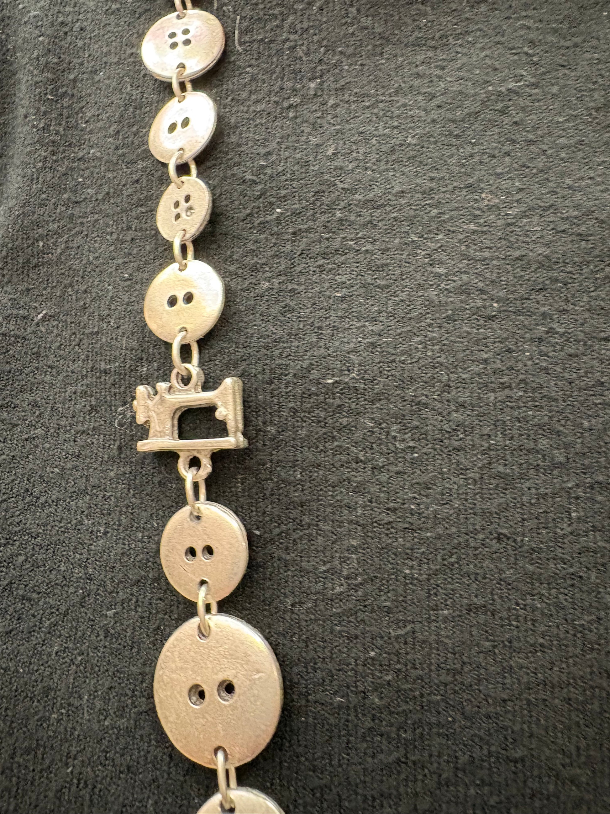 Collana Lunga in zama con bottoni macchina da cucire e forbici