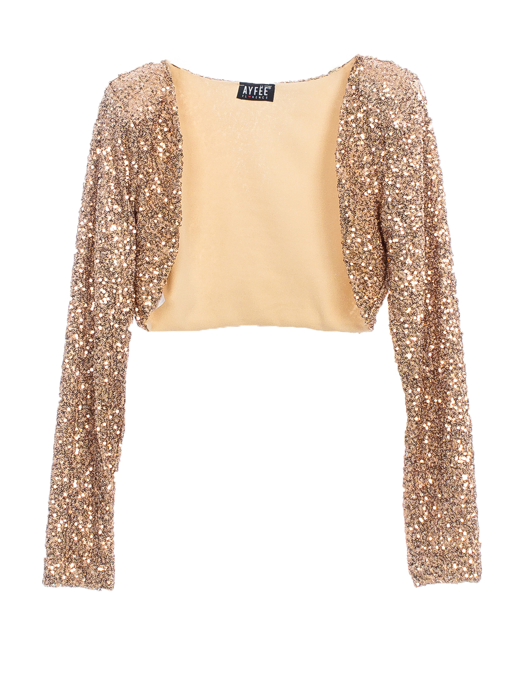 Elegante coprispalle completamente ricoperto di paillettes per illuminare le tue serate speciali.