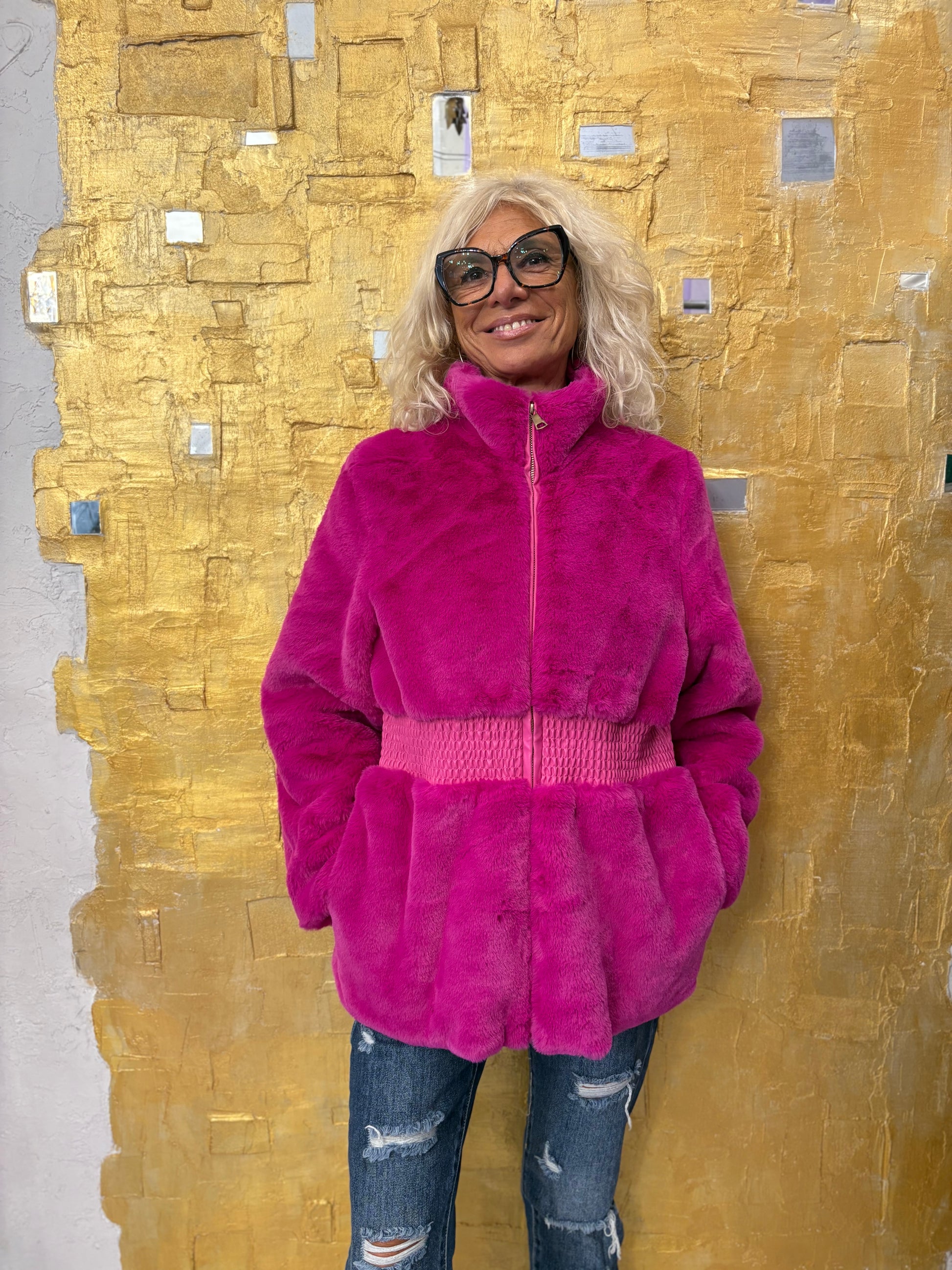 GIACCA AVVITATA PELLICCIA TINTA UNITA,100% POLI