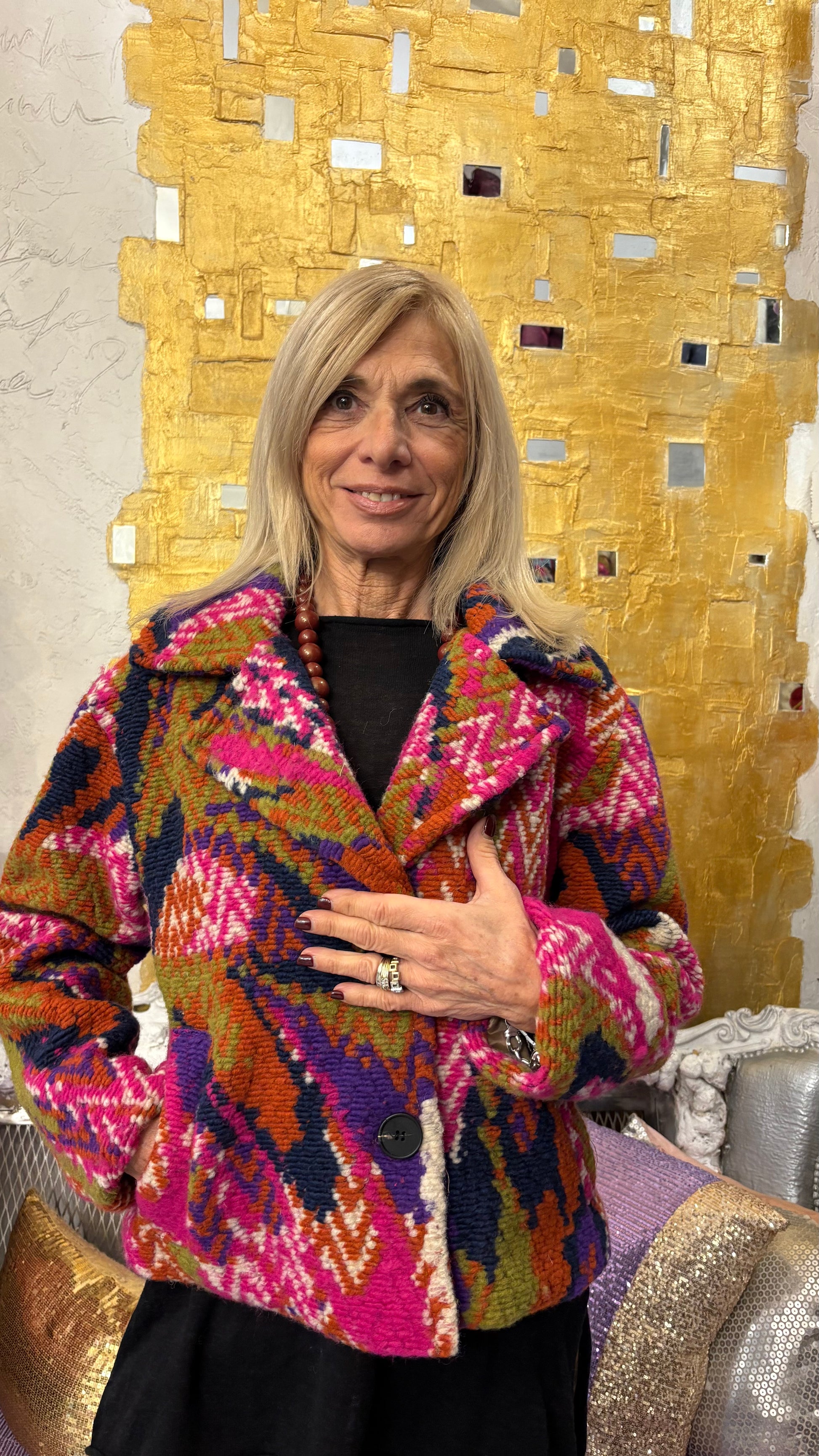 Giacca corta jacquard Multicolor pied de poule 100% pura lana