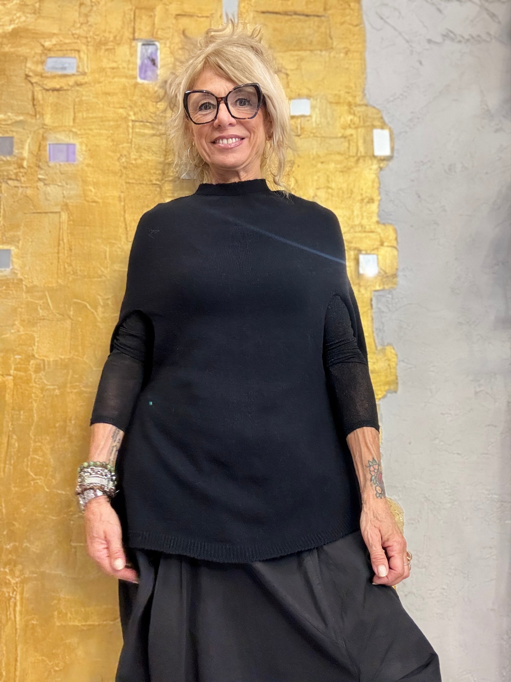 Poncho con fori per le mani, Taglia unica # 69% Viscosa 29% Acrilico 2% Elastan # Made in ITALYbrand Ayfee