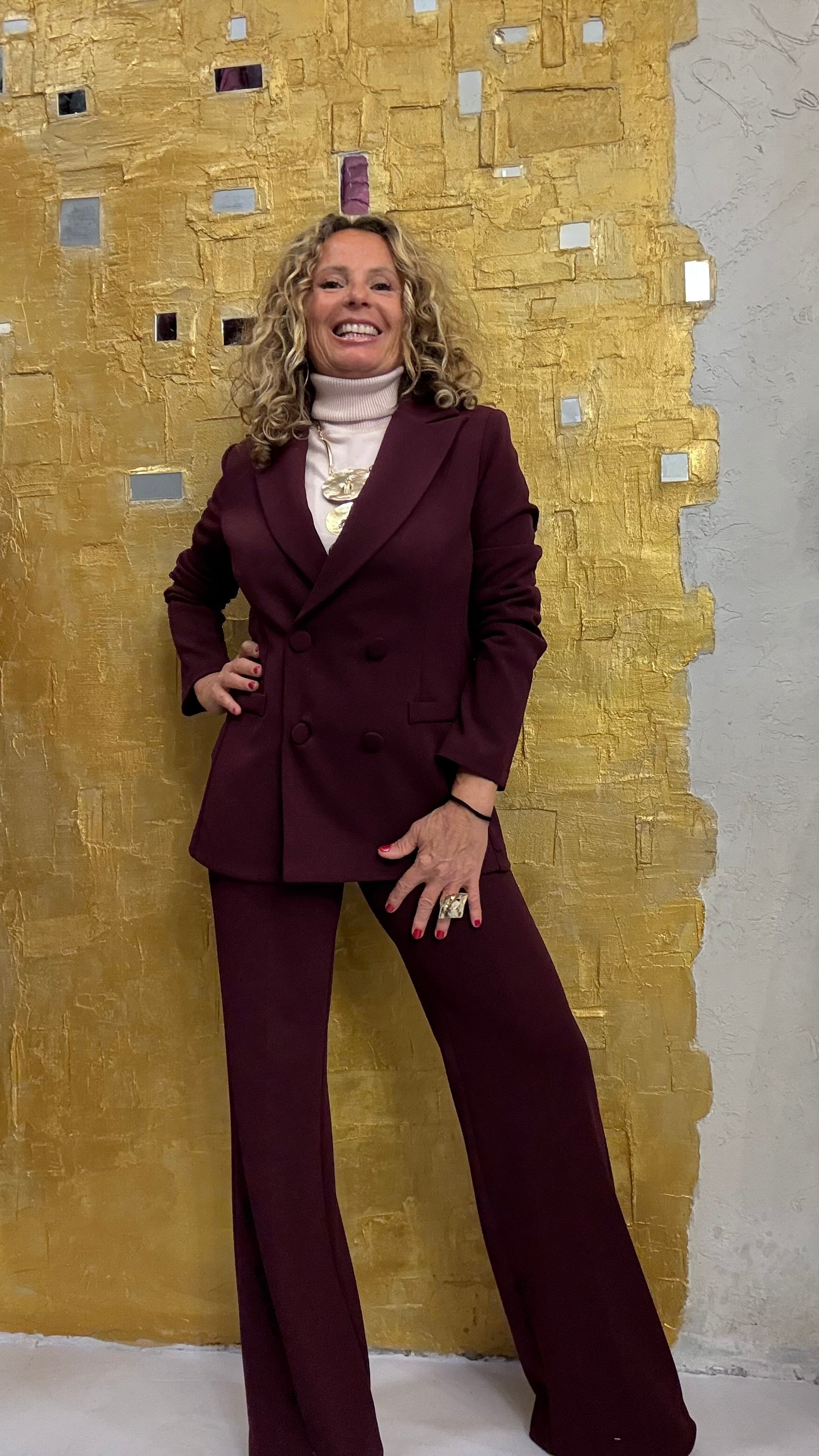 Tailleur crepe doppio petto con pantalone palazzo Rinascimento