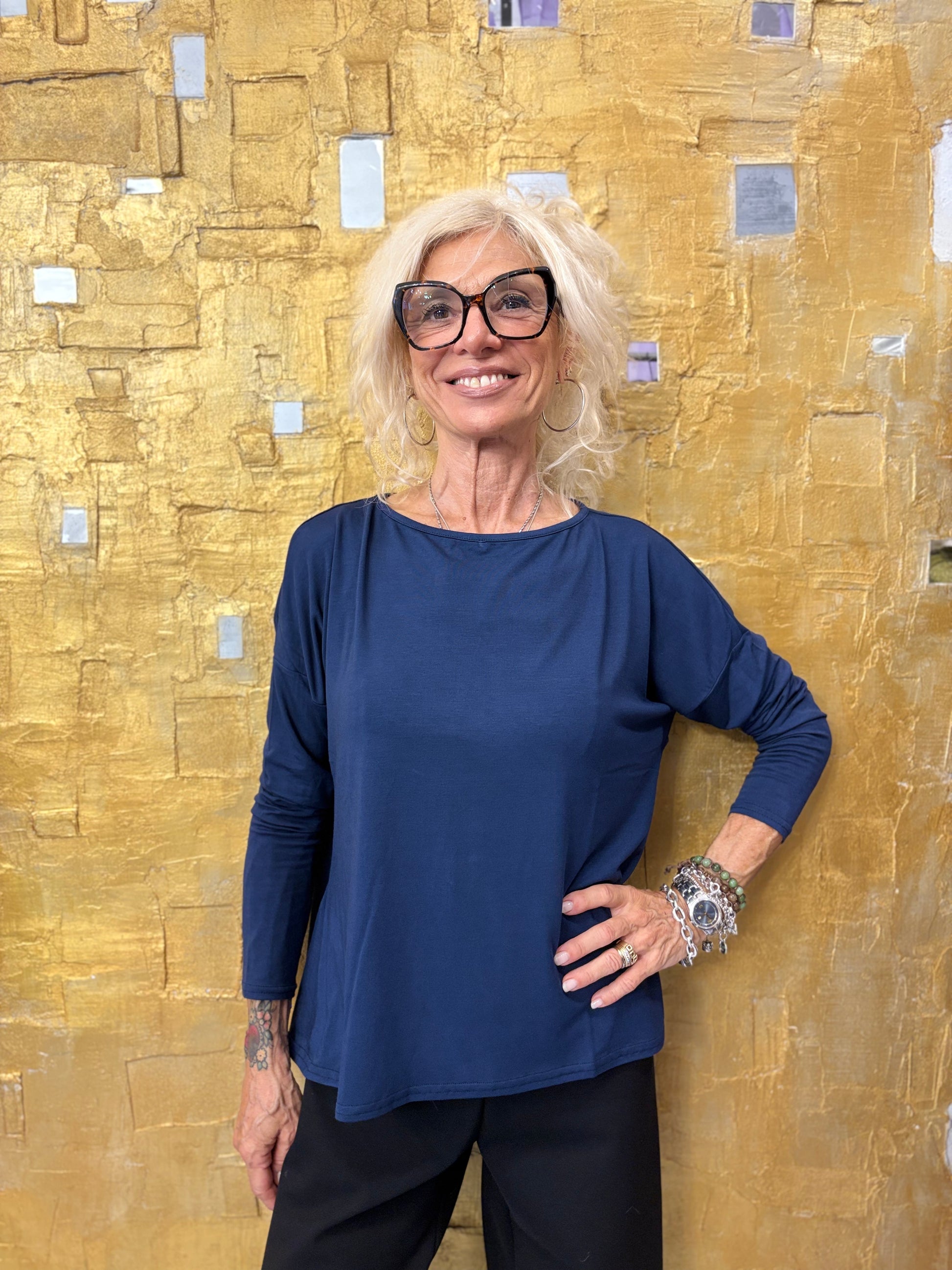 T-shirt modello scatolina, taglio over stondata sul fondo, taglia unica